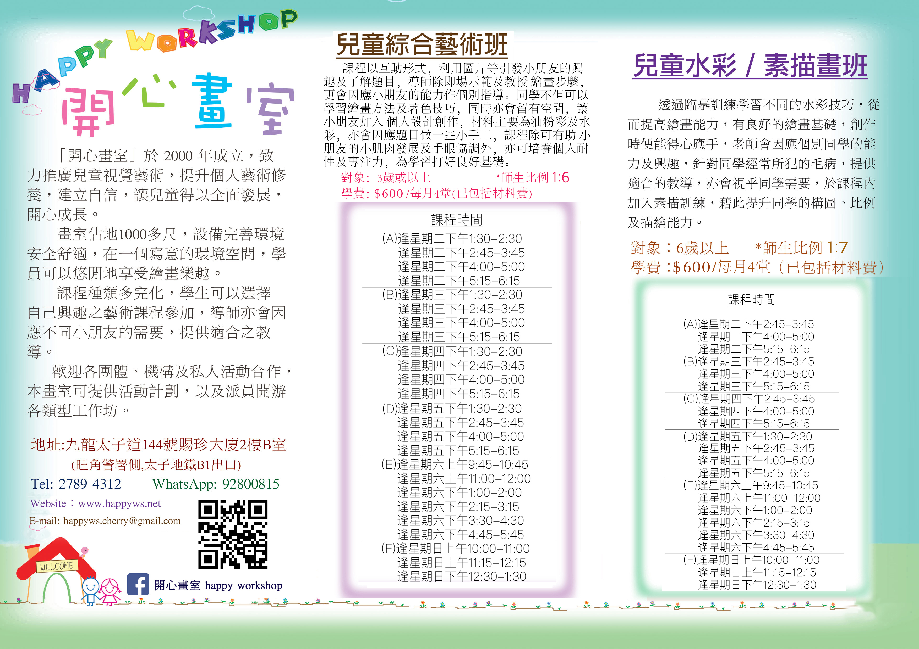 開心畫室於2000年成立,致力推廣兒童視覺藝術,提升個人藝術修養,建立自信,讓兒童得以全面發展,開心成長。